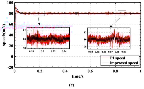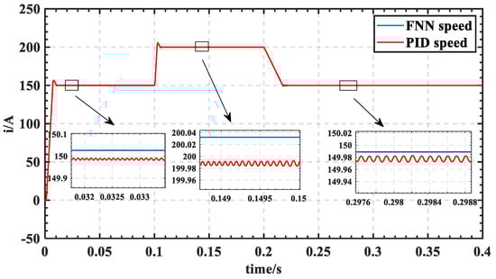 As can be seen from Figure 10, during variable speed motion, the speed stability of flexible neural network control was significantly higher than that of ordinary PI control, and this phenomenon became more obvious when the speed was increased.