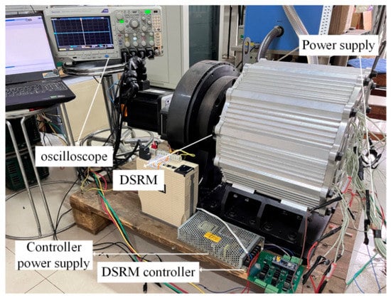 The STM32C8T6 development board and MATLAB automatic code generation tool were combined to carry out experimental verification. STM32CubeMX software was used to generate the underlying configuration code, and the optimized algorithm was imported to complete the experiment, which improved the work efficiency. The experimental verification platform is shown in Figure 14. The experimental platform was built with a drive board, control board, the deflection switched reluctance motor, and other hardware facilities. As the controlled object, DSRM used the code generation tool to generate the control algorithm C code, and then transmitted it to the STM32C8T6 development board for algorithm verification, completing the experimental verification of the DSRM.