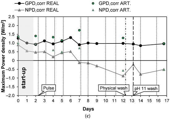Rblank value of about 0.27 Ω was found in our system. Thus, to evaluate the power density of scaled-up units, the so-called corrected (gross) power density (