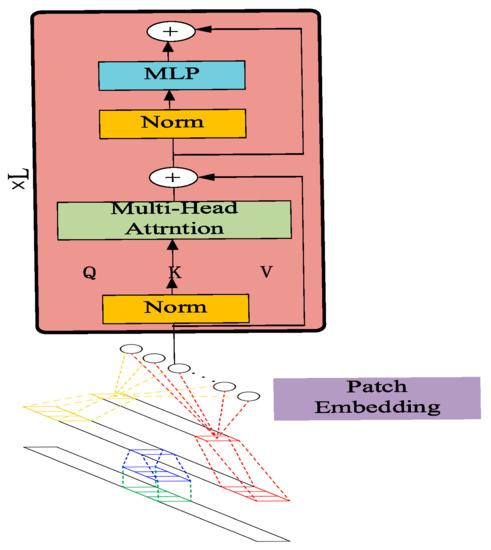 - Dosovitskiy, A.; Beyer, L.; Kolesnikov, A.; Weissenborn, D.; Zhai, X.; Unterthiner, T.; Dehghani, M.; Minderer, M.; Heigold, G.; Gelly, S. An image is worth 16x16 words: Transformers for image recognition at scale. arXiv Prepr. 2020, arXiv:2010.11929. [Google Scholar]