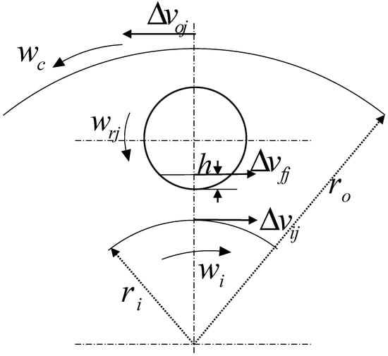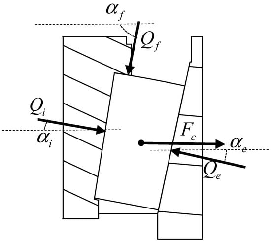As shown in Figure 2, for the stress analysis of the roller, the loads of the roller and the inner and outer raceways and the inner ring retaining edge are , and , respectively, and their contact angles are , and . When the rollers are balanced, these loads must satisfy the following balance equations: