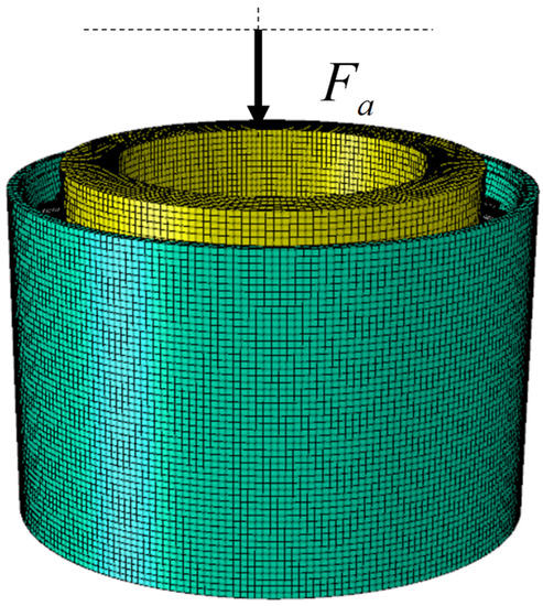 The test bearing is a railway freight car bearing 353130B, a double-row tapered roller bearing composed of a double raceway outer ring and two separating inner rings. Table 1 shows its main parameters. The bearing is modeled based on ABAQUS, and the steady-state temperature field of heat conduction is analyzed. Figure 5 shows the model. The total number of nodes is 1,167,669, and the total number of grids is 1,048,800.