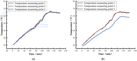 Figure 12b shows the comparison results. The results show that the maximum temperature difference measured by the two methods is about 1 °C, and the error is acceptable.