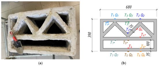 Figure 3a shows the type of construction. The temperature and heat flow sensors were evenly located on the panel surface (Figure 3b).