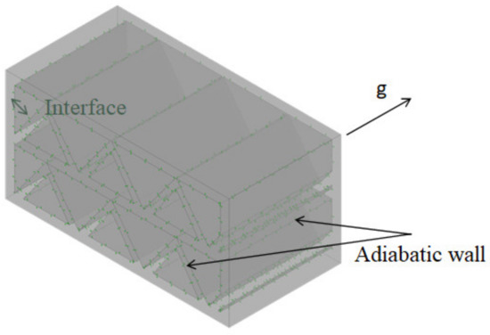 The air domain was set to have the buoyancy to take natural convection into account. The gravity vector direction is shown in Figure 6. Air density was calculated according to the ideal gas equation of state. All thermal properties of materials are shown in Table 2. The calculation was made in the assumption of laminar convection, so no turbulence models were used.