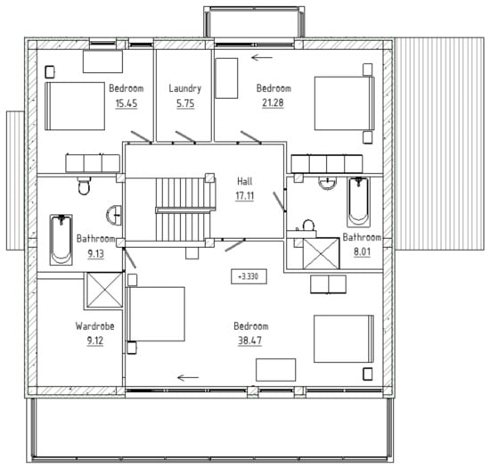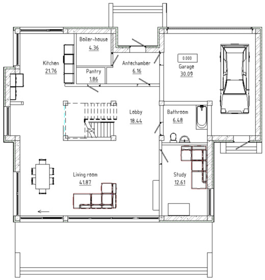The influence of different enclosing structures on the annual consumption of thermal energy is considered in the example of a cottage in Saint Petersburg (Figure 15, Figure 16 and Figure 17).