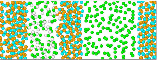 The temperature in the biomass boiler or biowaste incinerator is set at 300–1100 °C according to the different properties of the furnace body material and fuel [23]. In this study, the simulated temperature is 1300 K, the simulated time step is 0.25 fs, the number of steps is 2 × 106, and the total duration is 0.5 ns. Periodic boundary conditions are applied along the x, y, and z-directions. The temperature is controlled with a Nose–Hoover thermostat.
