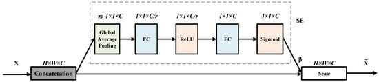 where , and . Finally, the final output of the SE module is obtained by scaling the feature map input X with :