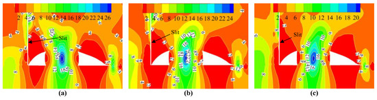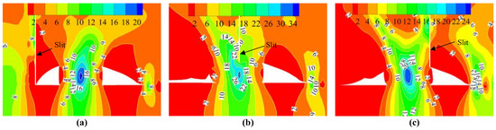The nephogram of the vertical stress distribution of the surrounding rock at different top cutting positions is shown in Figure 9. It can be seen from Figure 9: ① There is a significant difference in the effect of different slit positions on the coal pillars, with the best effect of roof cutting on the side of the working face, followed by the roof cutting on the side of goaf, and the roof cutting above the coal pillars. ② When the top cutting position is located on the side of the working face, the working face can fall vertically and fill the goaf after mining, and the stress will not be transferred to the coal pillar side, which is the most ideal top cutting effect.