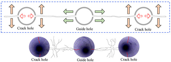 Schematic diagram of the action of the pilot hole and the crack-causing hole.