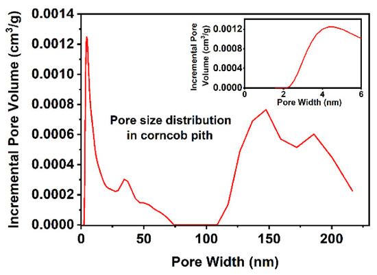 Pore size distribution in corncob pith (the illustration shows no pore size is less than 2 nm).