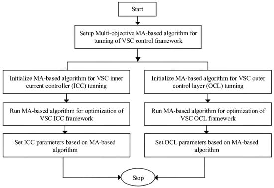 The VSC controller has a complex framework, and tuning controller parameters require a robust yet straightforward solution [32,33]. With this in mind, the proposed research proposes and examines the multi-objective MA technique to optimize the VSC control framework [34,35]. However, compared to the existing literature, the multi-objective MA technique has not been applied to optimize multiple control settings simultaneously in terms of an ITEA, which helps to enhance the VSC performance within an MTDC grid.