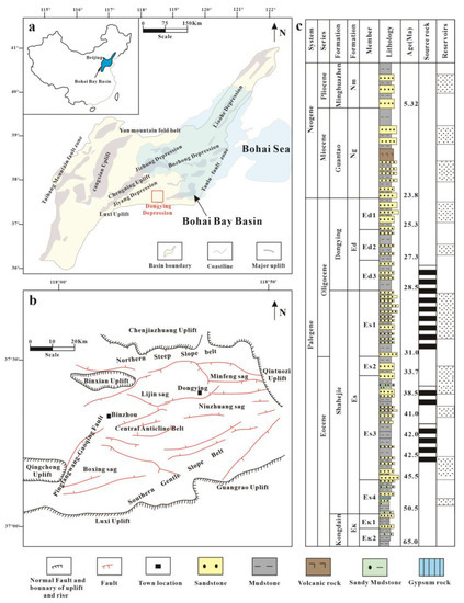- Ma, L.; Zheng, H. Structural characteristics of the Central Uplift Belt of The Dongying Depression, Bohai Bay Basin. Pet. Geol. Exp. 2006, 28, 103. [Google Scholar]