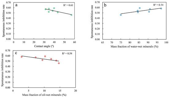 - The mineral composition of the rock affects the wettability, controls the capillary force, and affects the spontaneous imbibition characteristics of the rock. During imbibition, when water is in the wetting phase, it drives the non-wetting phase (air) via capillary force. The more lipophilic the rock is, the less capillary force there is during the wetting phase, the less capillary resistance there is during the non-wetting phase, and the less the spontaneous imbibition rate of the wetting phase is.