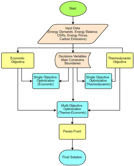 In Figure 9, a GSHP optimization methodology is outlined, with a summary of its basic steps and approaches, including multi-objective and single-objective optimization. The optimization methods, objective functions, and decision variables reported in the literature are outlined in Table 4.