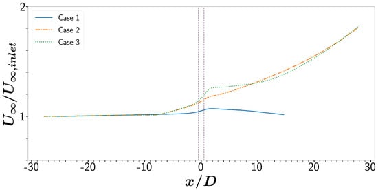 Freestream velocity ratio () for Case 1, Case 2 and Case 3.