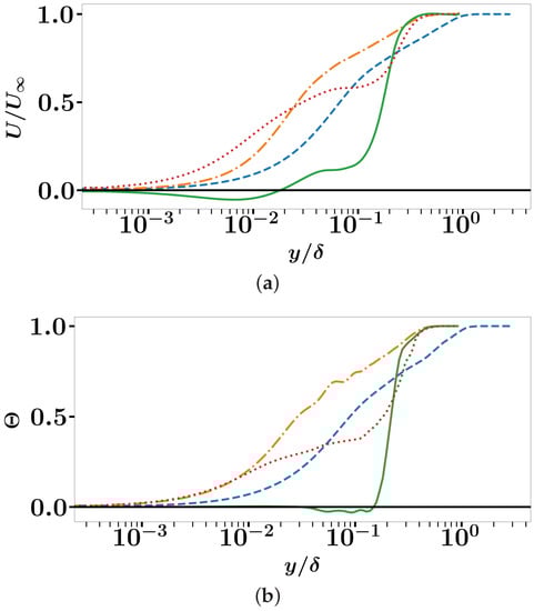 where U is the mean streamwise velocity and  is the freestream velocity. The momentum thickness, , represents the loss of the incoming flow momentum due to the presence of a solid wall and the no-slip condition in the fluid–wall interaction caused by the fluid viscosity. It represents a very important integral boundary layer parameter since it can be demonstrated that  is proportional to the drag force infringed on the body. Furthermore, based on the length scale , the following momentum-thickness Reynolds number is defined;