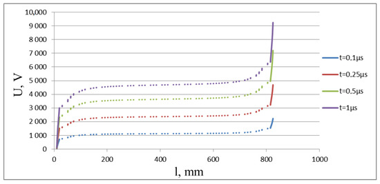 As a result of applying a voltage shock to the considered MCA model, as it is shown in (Figure 4 and Figure 5), we will analyze the electric field intensity level. Simulations were carried out in dynamic mode, and the results are presented for selected time segments from the time the potential was applied.