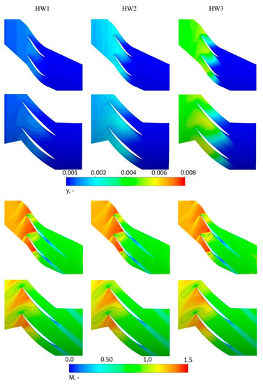 As the Spatial Discretization Scheme, the pressure-based solver available in ANSYS Fluent was used. The MUSCL method was employed to achieve the third-order accuracy in space. For all presented in the paper results, the steady-state solution was obtained by means of the implicit time integration method. As a convergence criterion of the iteration process, it was assumed that the mass flow rate difference between rotor inlet and outlet was less than 0.1%. The absolute total parameters at the inlet, total pressure and total temperature, as well as static pressure at the rotor outlet were assumed as the boundary conditions.