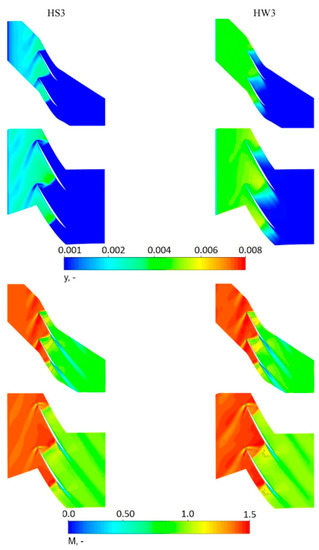 Figure 11 presents the water mass fraction and Mach number for HW3 and HS3 condensation case at 0.9 span of rotor 37 and rotor 67. As it can be seen, the condensation process near the tip of the rotor is more gradual than at 0.5 span and the condensation starts further upwind the rotor, however, the droplet growth is slower, and therefore, the total amount of condensed water is lower in comparison to mid-span area.