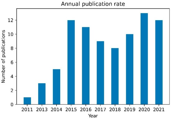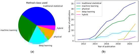 The most commonly used machine learning methods in the studies reviewed are Artificial Neural Networks (ANN) [11,94,95,96,97,98], Random Forest (RF) [41,65,73,99], Gradient Boosted Trees (GBT) [29,100], and Support-Vector Machine (SVM) [65,79,101]. All studies that used machine learning methods were compiled in Table 3.