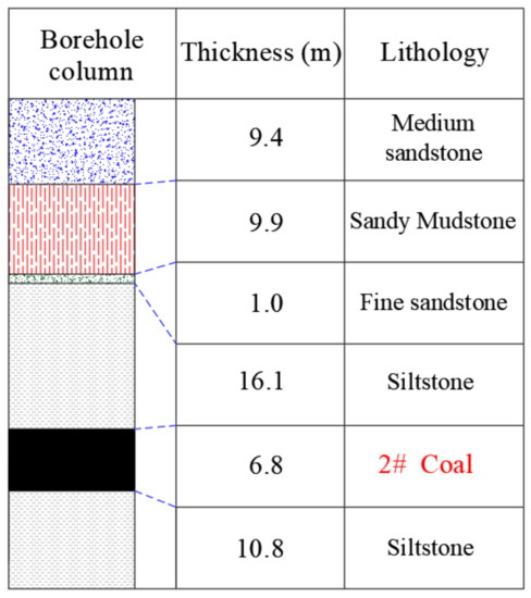 | Number | Lithology | Thickness (m) | Compressive Strength (MPa) | Elastic Modulus (GPa) | Poisson Ratio | Tensile Strength (MPa) |