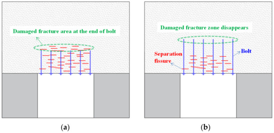 - Study of the damage range of the surrounding rock in deep-buried high-stress roadways. From the previous analysis, it can be concluded that the damage range of deep-buried high-stress roadways obviously differs from that of shallow buried roadways. Therefore, taking the shallow buried roadway as a comparison helped in the study of the damage range of the surrounding rock of deep-buried thick top-coal roadways for bolt support design.