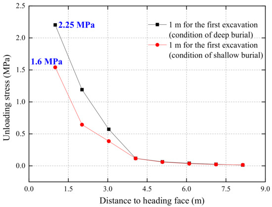- For high-stress roadways, when lagging 11 m behind the heading face, the low-value stress range of the roof strata is 3 m, and the low-value stress range of the coal rib is 2–3 m. Therefore, compared with the shallow buried low-stress roadway, the deep-buried high-stress roadway suffers a larger range of damaged depth and area.