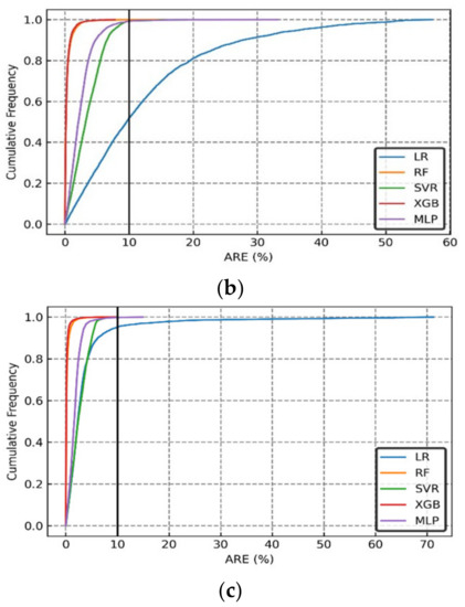 Hyperparameters for a machine learning algorithm are external configurations whose values cannot be estimated from data [63]. The hyperparameters for a model need to be tuned or optimized to improve the learning process. For example, some of the hyperparameters for an artificial neural network (ANN) are the number of layers, nodes, the learning rate, and the activation function (sigmoid, tanh, ReLU, and others). The hyperparameters have a significant effect on the output of an algorithm. The hyperparameters control various metrics or tools (decision boundary) that an algorithm uses to create a proxy model. In advance, we do not know the best values for a model’s hyperparameters [63]. This study used the grid search to identify the optimal set of hyperparameters, resulting in the lowest mean absolute error for a given algorithm. The hyperparameters for each algorithm and their optimal values are summarized in Table 2.