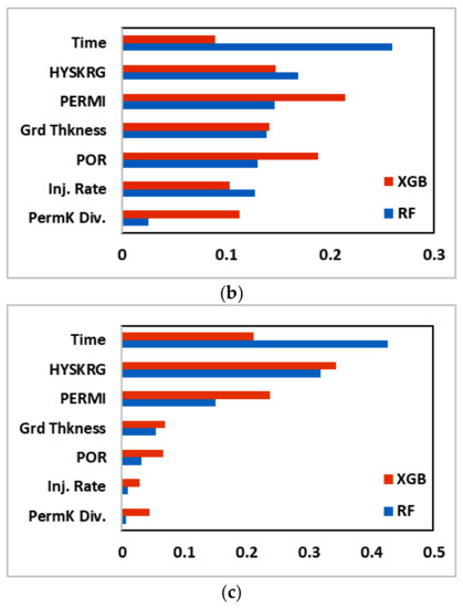 Figure 6 shows that, throughout time, the effect of the RTI decreased, whereas the impact of the STI increased gradually. The effect of the MTI was negligible in the initial portion of the simulation. However, since mineral trapping is the most secure method of safe storage of CO2, this study includes the effect of the MTI. It should be noted that the impact of the MTI will increase throughout time and will be more significant after a long period [66].
