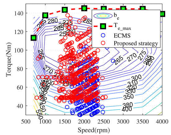 Engine operation points of ECMS and proposed strategy.
