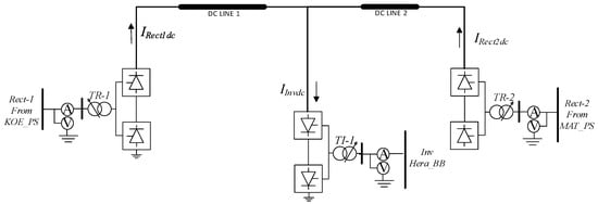 The first rectifier used in this study is connected at the MAT_PS substation at a distance of 1540 km from the inverter station at Hera Substation. The second rectifier is connected at the KOE_PS substation with a 540-km distance interval from the inverter station. Both rectifiers export power to the Hera substation in the Central grid.