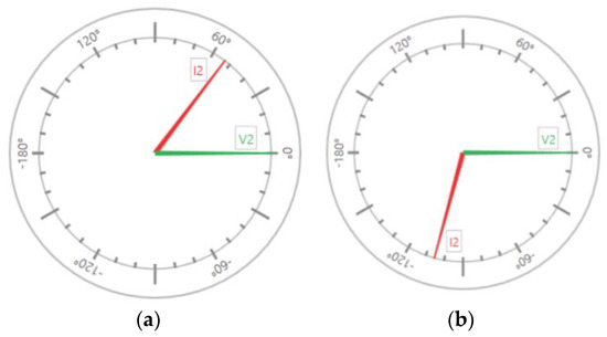 (a) Angular difference between the negative-sequence current and voltage for the solar inverter; (b) angular difference between the negative-sequence current and voltage for the synchronous generator.