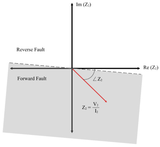 The 67Q element determines the direction of a fault (forward or reverse to the relay) by measuring the phase angle difference between the negative-sequence voltage and current phasors. Figure 13 shows a typical implementation and operating principle of the 67Q element [7]. The concept is that a forward or reverse fault causes a phase angle difference of −90°/90° between the negative-sequence voltage and current phasors. This assumption is based on the highly inductive nature of the negative-sequence network in a synchronous generator-dominated grid. The 67Q element classifies a fault as forward if the measured phase angle of negative-sequence current lags the polarizing negative-sequence voltage between 0 and 180 degrees. The 67Q element classifies a fault as reverse otherwise. This assumption potentially causes the maloperation of the 67Q element under solar inverters during the grid restoration period.