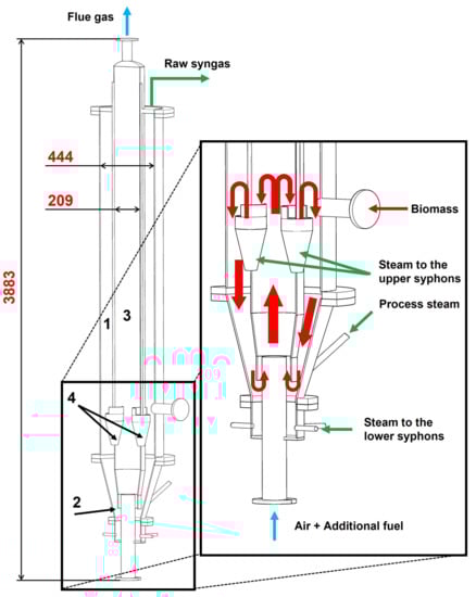 - The system compactness, which makes it suitable for small-scale applications (0.1–1 MW as biomass input), due to integration of both reaction chambers (gasification and combustion) in the same cylindrical body;