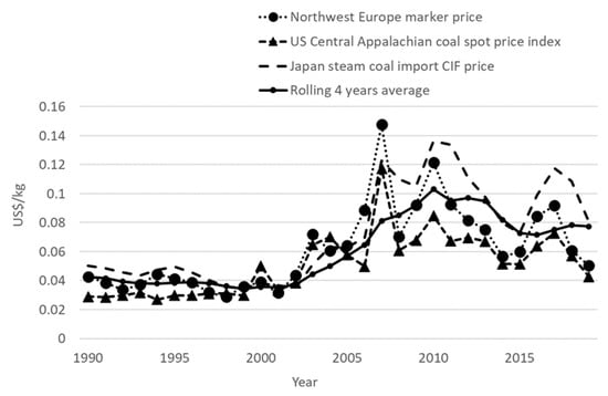 Similarly, the other columns show the results of the rank-sum tests in different time categories (i.e., before 2000, 2001–2010, 2011–2015, and 2016–2020). Only the test for the period 2011–2015 was rejected at the 5% significance level, and the others were not rejected at the 10% significance level. Each observed rank-sum until 2015 (i.e., 38.5, 134.5, and 78) was lower than the expected value (i.e., 42, 180, and 138), whereas the rank-sum after 2016 (i.e., 427.5) was higher than the expected value (i.e., 363). This indicates that the cost of biomass hydrogen was lower than those of the other hydrogens until 2015 but increased after 2016.