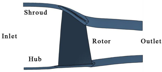 where , , , , , , the energy e is given by ; the pressure p is given by ; the blockage b can be modeled as to account for the blade thickness, and the source term Φ is given by Φ = Φ′ + Φ″. Φ′ and Φ″ are body forces and extra terms, respectively, as follows.