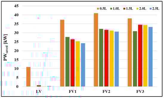 Figure 9 shows the tractive power saved by the vehicles platooning compared to the single moving vehicle (SV). For the leading vehicle (LV), the power energy was not saved much compared to SV but from the 2nd vehicle (FV1, FV2, FV3) the tractive power distinctively decreased. The power saved on the model vehicles platooning versus SV was calculated with Equation (7).