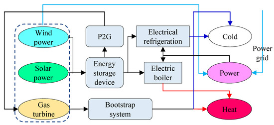 As important material resources in supporting society’s continuous development, the water–energy nexus has gradually focalized energy resource utilization and eco-friendly, low-carbon development [1,2,3,4]. The feedback relations, mutually between water and energy, would be comprehensively considered and integrated into system optimization management and decision-making processes—an important measure for promoting sustainable development. As clean energy technologies advance, the integrated energy system has become a significant energy supply mode for supporting local clean energy consumption in recent years [5,6]. Complementary coupled multi-energy flow and comprehensive energy supply in the integrated energy system lead to multiple interactions between water and energy and multiple complexities in resource management that directly alter the effectiveness of system operations under water- and energy-saving pressures [7,8]. Therefore, it is necessary to clarify the interaction of water and energy and to explore the co-operating strategy of multiple energy streams from the water–energy nexus within the integrated energy system.