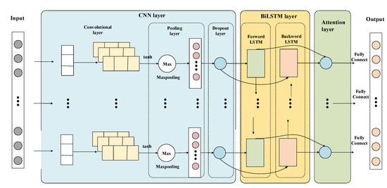 - Step 3: The BiLSTM layer trains and learns the data processed by the CNN layer from two directions through the forward LSTM network and the backward LSTM network;