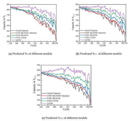 - The multi-step prediction results of battery SOH by different models show that the prediction accuracy of model can be optimized by using CNN for feature extraction of input factors and dimensionality reduction in data, and the BiLSTM method outperforms the LSTM method in multi-step prediction of battery SOH.