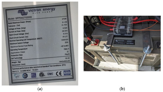 - Victron Energy, “MPPT Solar Charger Manual”; Victron Energy, B.V. (Ed.) Victron Energy Manuals Publishing House: Almere, The Netherlands, 2021. [Google Scholar]