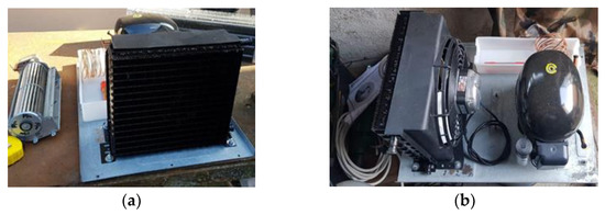 The heat load brought by products when introduced into the vending machine is given by Equation (4). The most disadvantaged situation was estimated, namely when all the products are replaced simultaneously and are at the maximum temperature at which they can be delivered with a transport vehicle without refrigeration, respectively. Every type of product was weighted, and the specific heat values were taken from Refs. [24,25].