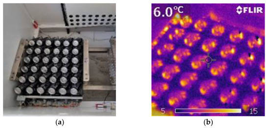 The graphs presented in the previous section showed in Figure 11a–d and the thermographic images shows that the designed refrigeration system was able to maintain a 6 °C average temperature of the products stored indoors, regardless of the external weather conditions, temperature, relative humidity, or solar radiation intensity.