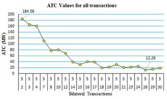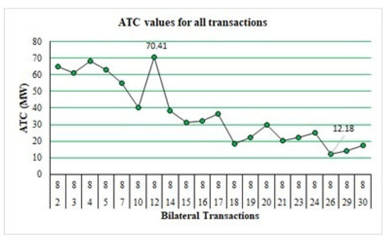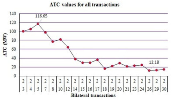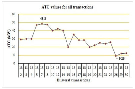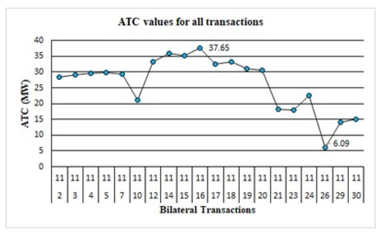 - ATC is then calculated by applying Equation (8) for nearby and farthest bus connected to the common generator bus (sending bus).