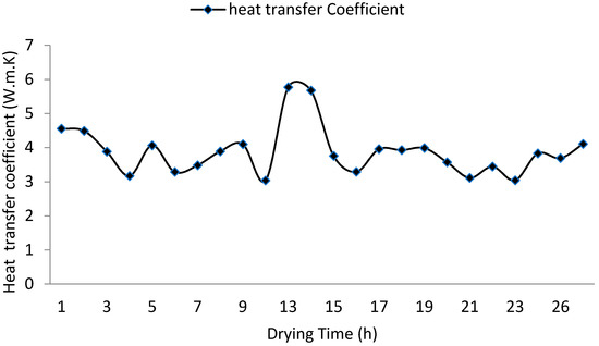 The hourly variation of the heat and mass transfer coefficient for the drying of cocoyam using the dryer was deduced with the Equation (12) [19].