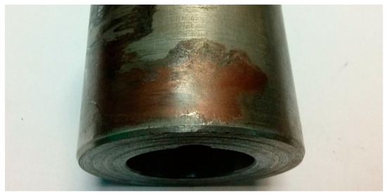 In electrical machines, as in any other devices, there are numerous negative phenomena of a destructive nature. The constructors of electrical machines try to limit these phenomena and/or minimize their negative effects. One such phenomenon in electrical machines is the occurrence of bearing voltages and currents. Despite their simple structure, the bearings are susceptible to damage to the raceway surface and rolling elements. Even small traces and imperfections of these surfaces (e.g., in the form of pits, stripes, abrasions, corrosion, etc.) [3,4] may cause a serious failure resulting in the bearing being excluded from further operation. The consequence of high temperatures during point sparking between the raceways of the bearing and the rolling elements is pitting. If an electric machine operates together with another mechanical device, e.g., a gearbox, the bearing current may close through the shaft [5] and other bearings included in the drive system; this contributes to premature failure of the bearings during operation. Examples of damage to motor components caused by the flow of bearing and shaft currents are presented for the bearing in Figure 1 and the shaft journal in Figure 2. The intensity of damage to bearings and shaft journals depends, among others, on the strength of the bearing current, its flow time, and the type of lubricant used [6]. The failure-free operation time of bearings strongly depends on the current density at the point where the oil film breaks. Accelerated wear of bearings is caused by local smelting of the raceway material and rolling elements when the local heat energy is too high. Shaft voltages and bearing currents occur to a greater or lesser extent in almost every rotating electric machine: both in AC machines and in DC machines [7].