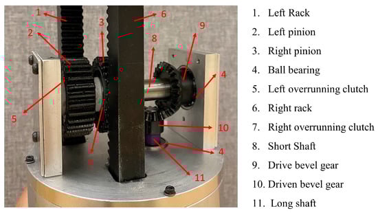Nakanoa et al. [28] developed a self-powered active vibration control system using a singular linear DC motor in the intervention region. Li et al. [29] proposed a rack–pinion mechanism to convert linear motion into rotational motion, that could be exploited for power generation by a DC generator. Peak power of 67.5 W was achieved with a conversion efficiency of 56%. Nakano [30] presented a bidirectional motor that rotates based on the suspension state, whether in compression or expansion. The energy was recovered from a truck cabin active suspension system using a ball–screw electromagnetic damper. Over a 20-second period, the simulated power amounted to 55 W. Nevertheless, the drawback of this bidirectional mechanism is the increased friction and backlash impacts of the system. The unidirectional mechanism effectively drives the motor rotations in one direction, regardless of whether the status of the suspension system is compressed or extended [31].