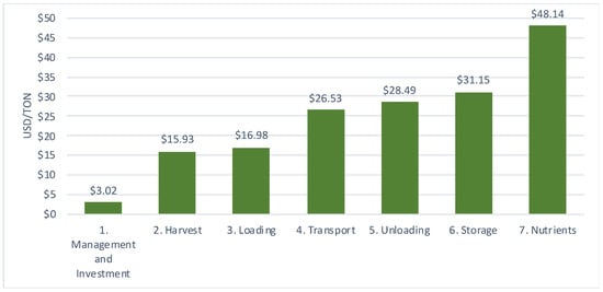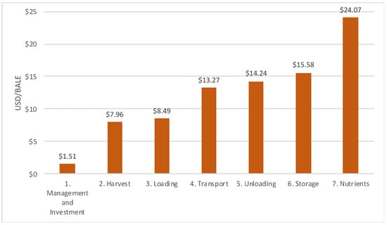 The cost structure was made to be followed and replicated for other regions and crops. With the idea that the structure can be adapted to different conditions at each chain link, the possibility of including additional costs for activities not contemplated in the current design was left open. Each concept must be calculated on a unitary basis per bale, ton, and ha. The complete cost structure can be seen in Figure 3.