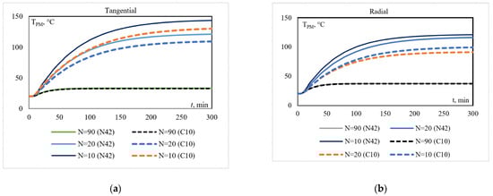 Both tangential and radial machines with N42 magnets exhibit higher power losses than the same machines with C10 PMs due to the higher residual flux of the rare-earth magnets. These power losses of the machines cause a rise in the temperature in the elements of the machine. Therefore, a thorough temperature analysis is necessary to investigate the effect of temperature on the operational characteristics of the machines.